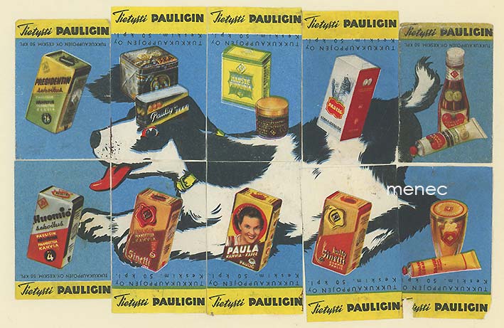 Tulitikkuetikettejä, Pauligin tuotteita, 10-osainen keräilysarja, koira 12 €