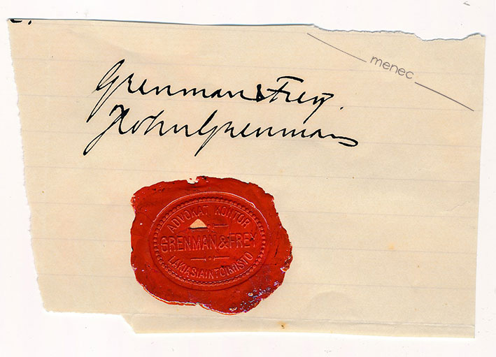 Sinetti ja allekirjoitus, Lakiasiantoimisto Grenman & Frey 5 €