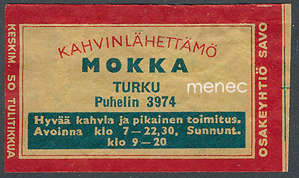 Tulitikkuetiketti, Kahvinlähettämö Mokka 2.5 €