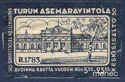 Tulitikkuetiketti, Turun Asemaravintola, musta 3 €