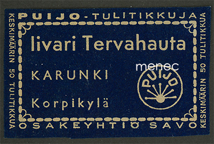 Kustantaja: Oy Savo Paino: 5 grammaa Sarja: Puijo Kunto: K3 Nyk. Torniota Hakusanat: tulitikkuetiketit paikallishistoria arctica Tuotenumero: 175112 Lisää ostoskoriin