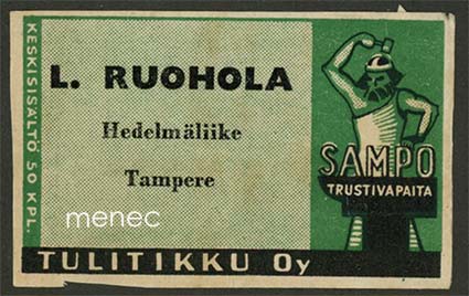 Kustantaja: Tulitikku Oy Paino: 5 grammaa Sarja: Sampo Painovuosi: 1930-luku Kunto: K3 Hakusanat: tulitikkuetiketit paikallishistoria Tuotenumero: 181705 Lisää ostoskoriin