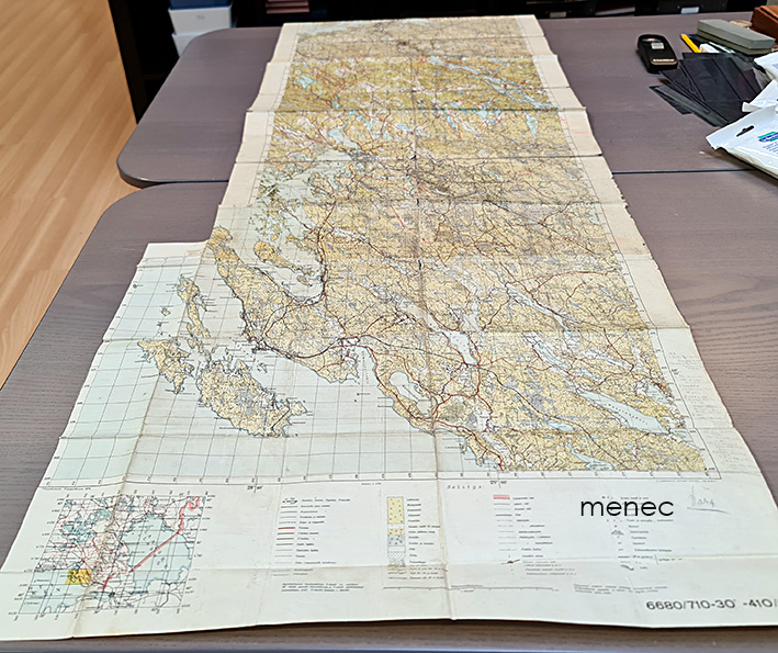 Paksuus: Yli 3 cm, postipaketti Paino: 200 grammaa Asu: 133x54/47 cm. - Kenttäkäytössä kulunut, taiteratkeamia. Reunoilla tarkkoja muistiinpanoja Kunto: K2 Ainoastaan virkakäyttöä varten Hakusanat: kartat, heraldiikka sota Tuotenumero: 199084 Lisää ostoskoriin