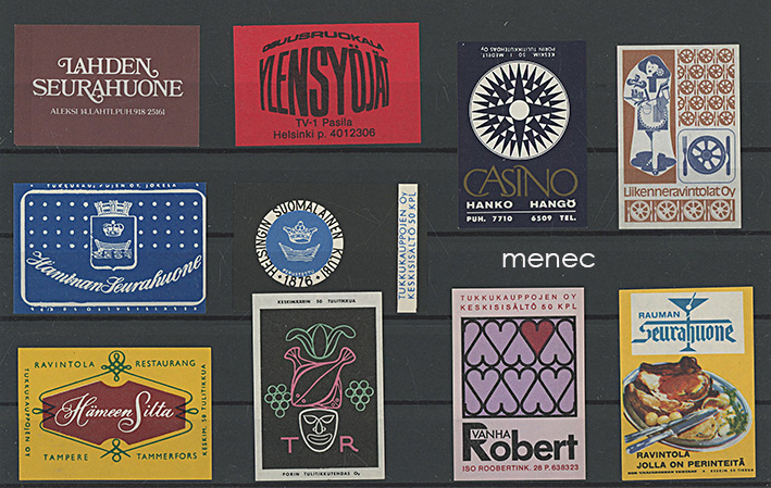 Tulitikkuetikettejä, ravitsemusliikkeitä, 10 kpl 8 €