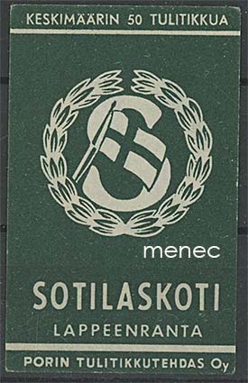Tulitikkuetiketti, Sotilaskoti, Lappeenranta 3 € 2.1 €