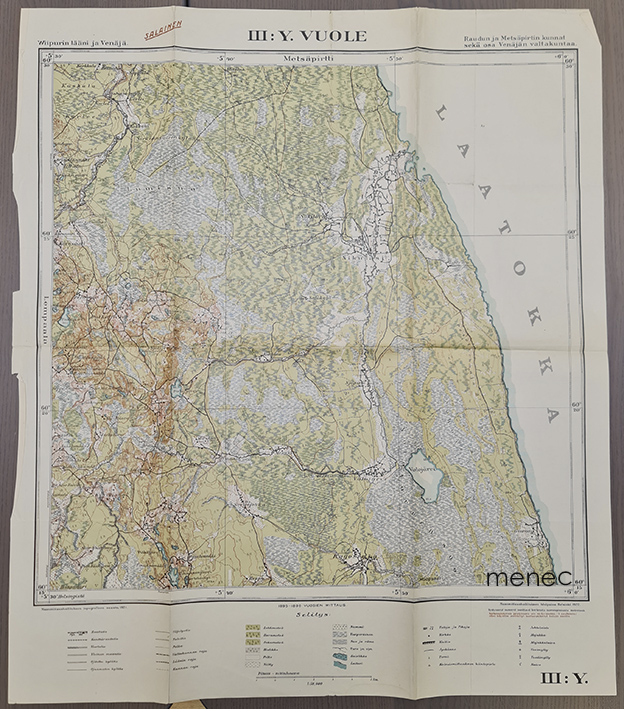 Kustantaja: Maanmittauslaitoksen topografinen osasto Paino: 30 grammaa Asu: 63x73cm Painovuosi: 1922 Kunto: K3 . Wiipurin lääni. 1:50000 Hakusanat: Karjala kartat, heraldiikka Tuotenumero: 200838 Lisää ostoskoriin