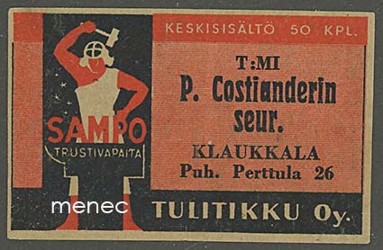 Seppä-tulitikkuetiketti, T:mi Costianderin seur., Klaukkala 2.5 €