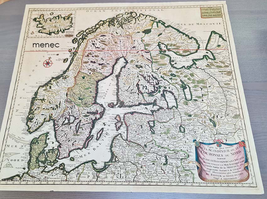 Carte la plus Nouvelle De La Scandinivie ou Les Couronnes Du Nord Scavoir La Suede Le Dannemark, et La Norvvege ou L'on Trouve la Mer Baltique… 325 €