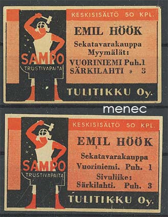 Seppä-etiketti, Emil Höök, Vuoriniemi, Särkilahti, 2 eri ladelmaa 4.5 €