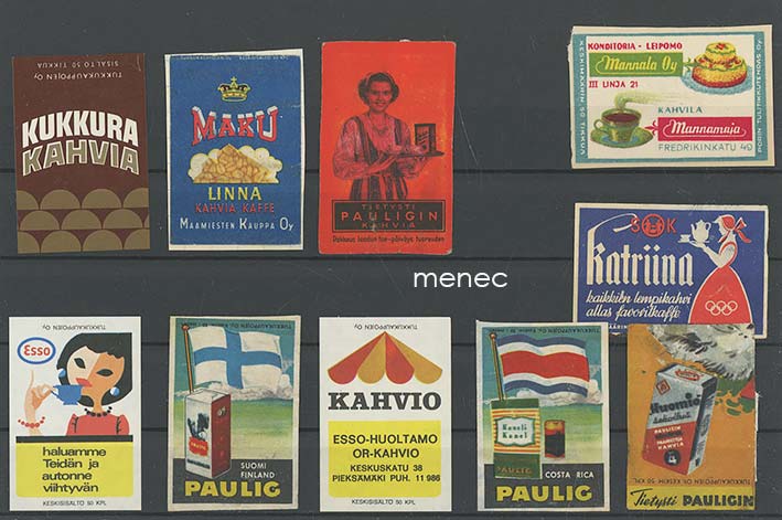 Tulitikkuetikettejä, kahviaiheita, 10 kpl 4 €