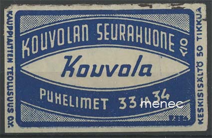 Tulitikkuetiketti, Kouvolan Seurahuone 2.5 €