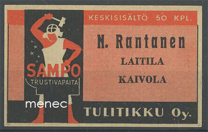 Kustantaja: Tulitikku Oy Paino: 5 grammaa Sarja: Sampo Kunto: K4 Hakusanat: tulitikkuetiketit paikallishistoria Tuotenumero: 229548 Lisää ostoskoriin
