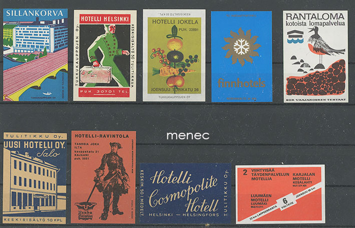 Tulitikkuetikettejä, hotelleja, 9 kpl 8 €