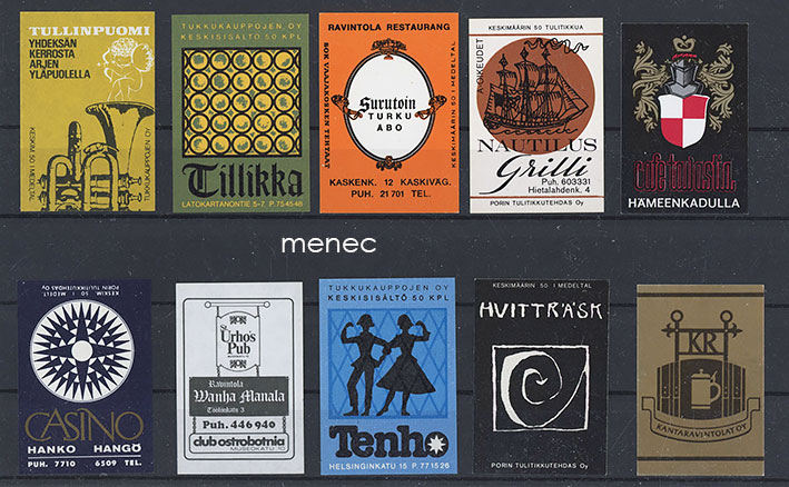 Tulitikkuetikettejä, ravintoloita, 10 kpl 10 €