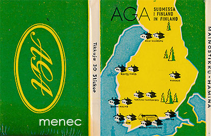 Tulitikkuetiketti, litteä, AGA Suomessa