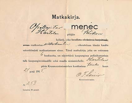 Matkustuslupa Hartolasta ulkopaikkakunti...