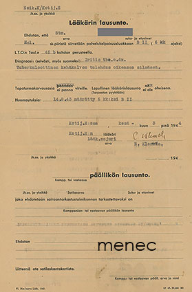 Lääkärinlausunto 1944, silmätulehdus
