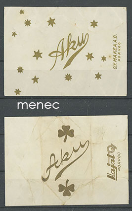 Aku, makeisetiketti, 2 kpl eri tehtaista