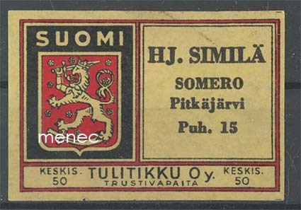 Tulitikkuetiketti, Hj. Similä, Somero