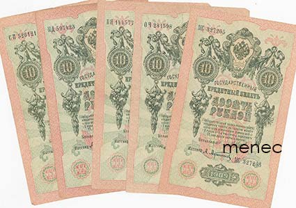 Venäjä, 10 ruplaa 1909, 5 kpl