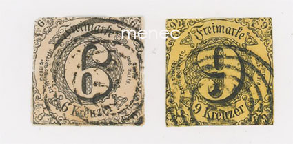 Saksa, Thurn und Taxis, käyttösarjaa 1852-1859, 6 ja 9 Kr