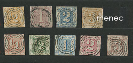 Saksa, Thurn und Taxis, käyttösarjojen 1862-1864 ja 1866 leimattuja Silbergroschen-arvoja, 9 kpl