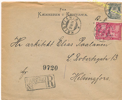 Postilähetys, Norja 1914, kirjattu, Suom...