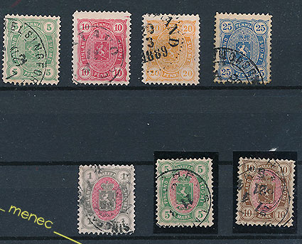 Nelilukuiset yleismerkit 1885, leimattu ...