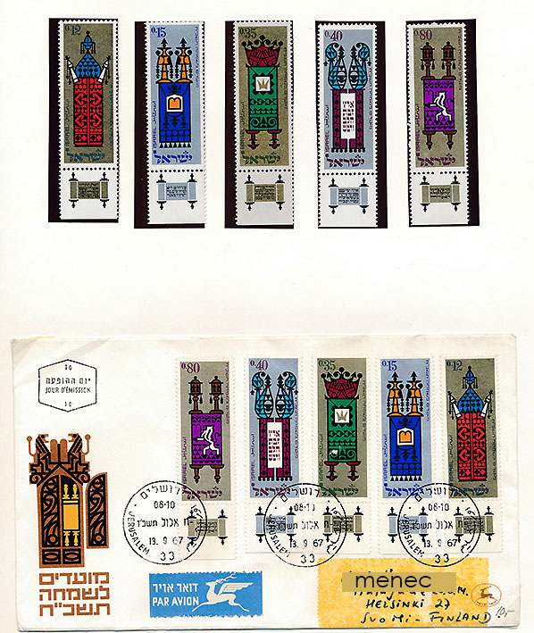 Israel, toora-rullia, 1967, 15 kpl + FDC