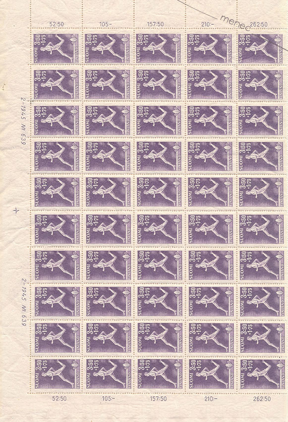 Urheilumerkki 3,50+1,75 mk 1945, arkki 100 kpl