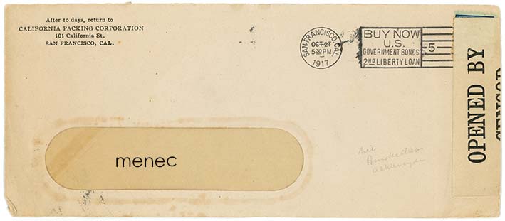 Kirje USA:sta Hollantiin 1917, sotasensuurin avaama