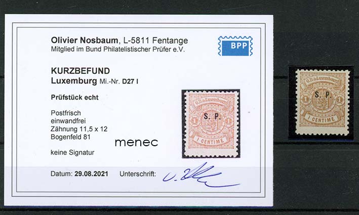 Luxemburg, virkamerkki 1881, 1c