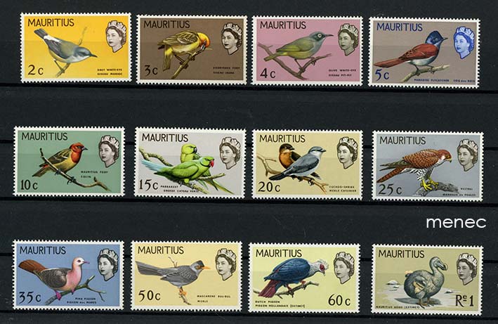 Iso-Britannia, Mauritius, lintuja 1965, 12 kpl