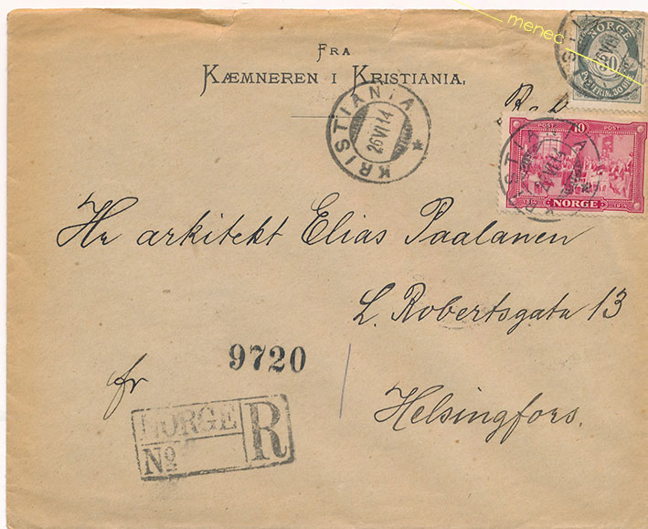 Postilähetys, Norja 1914, kirjattu, Suomeen