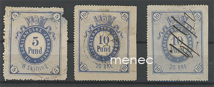 Tanska, De Sjaellandske Jernbaner, rautatiemerkkejä, malli 1866, 3 kpl