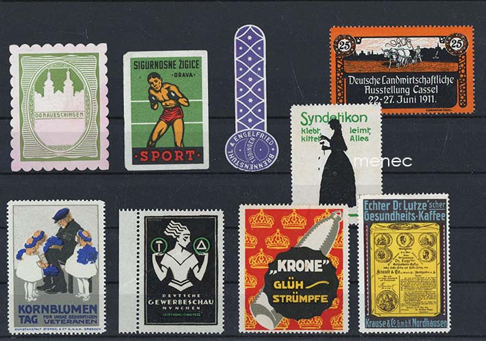 Saksa, mainosmerkkejä 1910-1920-luvuilta, 9 kpl