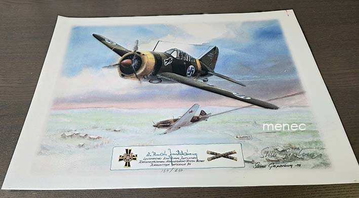 Kustantaja: Gripenberg Design Paksuus: Yli 3 cm, postipaketti Paino: 40 grammaa Asu: 29x40 / 33x46 cm - Numeroitu 154/250, painosigneerauksen lisäksi tekijän oma Kunto: K3 Hakusanat: grafiikka ilmailu sota Tuotenumero: 226708 Lisää ostoskoriin