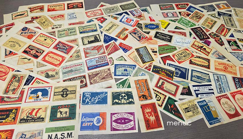 Erä sekalaisia tulitikkuetikettejä, kansioleikkeellä 18,00 €