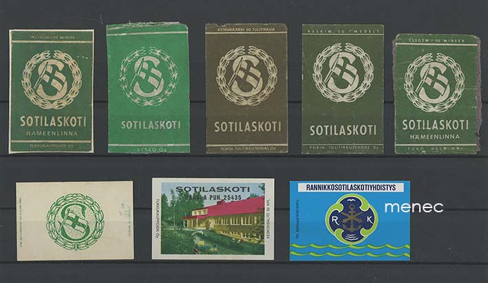 Tulitikkuetikettejä, sotilaskotiaiheita, 8 kpl 15,00 €