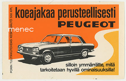 Tulitikkuetiketti, iso, Koeajakaa perusteellisesti Peugeot 7 €