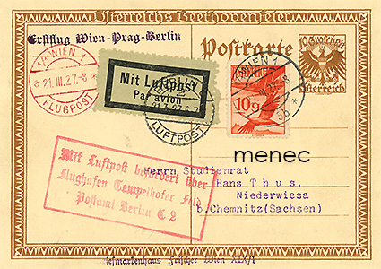 - Wien-leimat, kaksi Tempelhof C2 -postitoimiston palkkileimaa ja Berlin c2 -lentopostileima