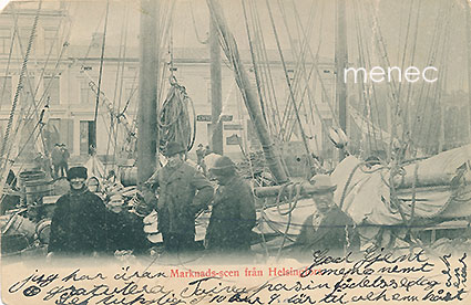 Helsinki, rantamaisemaa, miehiä veneiden...