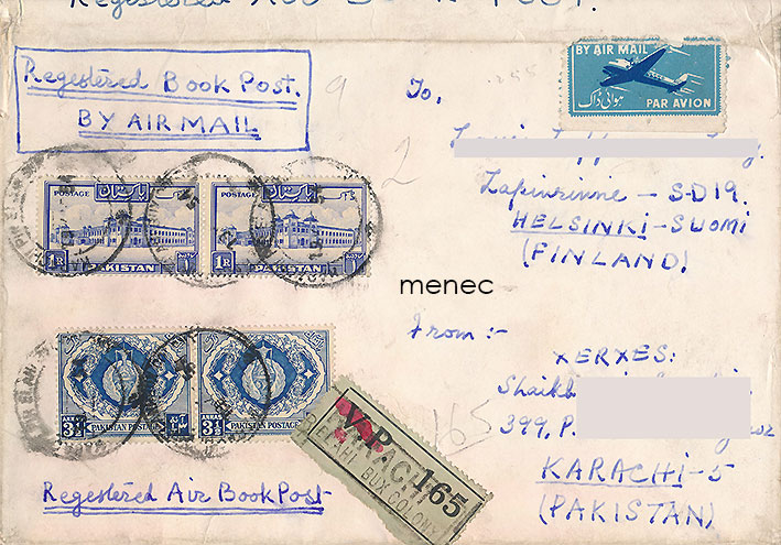 Kirjelähetys, Pakistan-Helsinki 1954, Registered Book Post