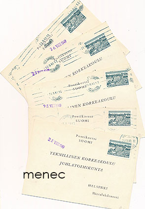 Kutsukortteja Teknillisen korkeakoulun 100-vuotisjuhlaan 1949, 5 kpl