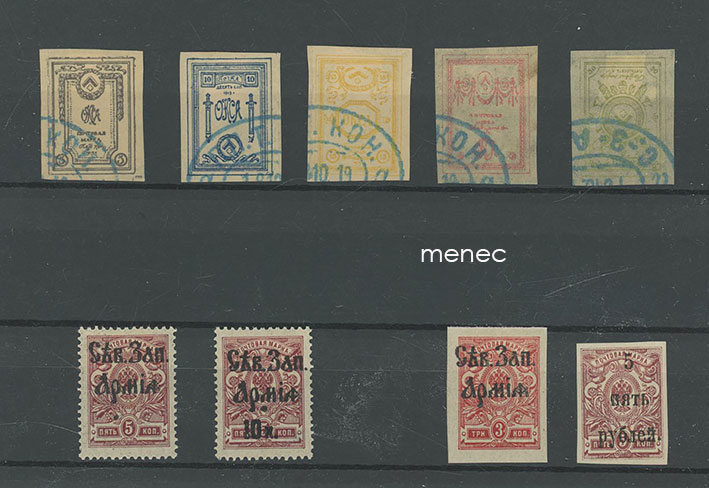 Mi 1919 2, 3, 5 ja 15-19 Judenitsh (ohut tupakkapaperille painettu sarja )