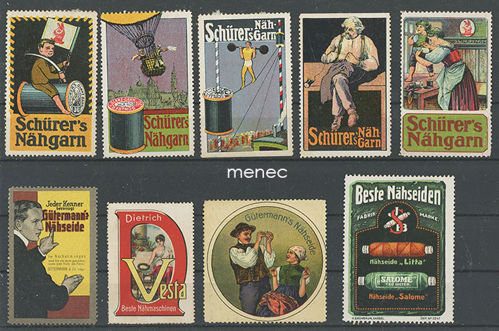 Eurooppalaisia mainosmerkkejä, ompelulankoja, 9 kpl